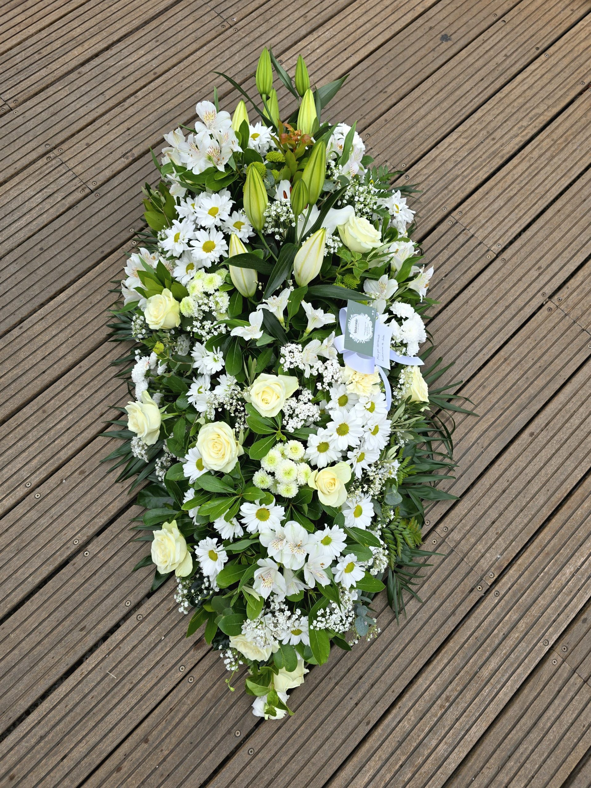 La pièce florale maîtresse pour rendre hommage à l'être cher disparu, ses couleurs expriment à la fois l'amour et le respect.