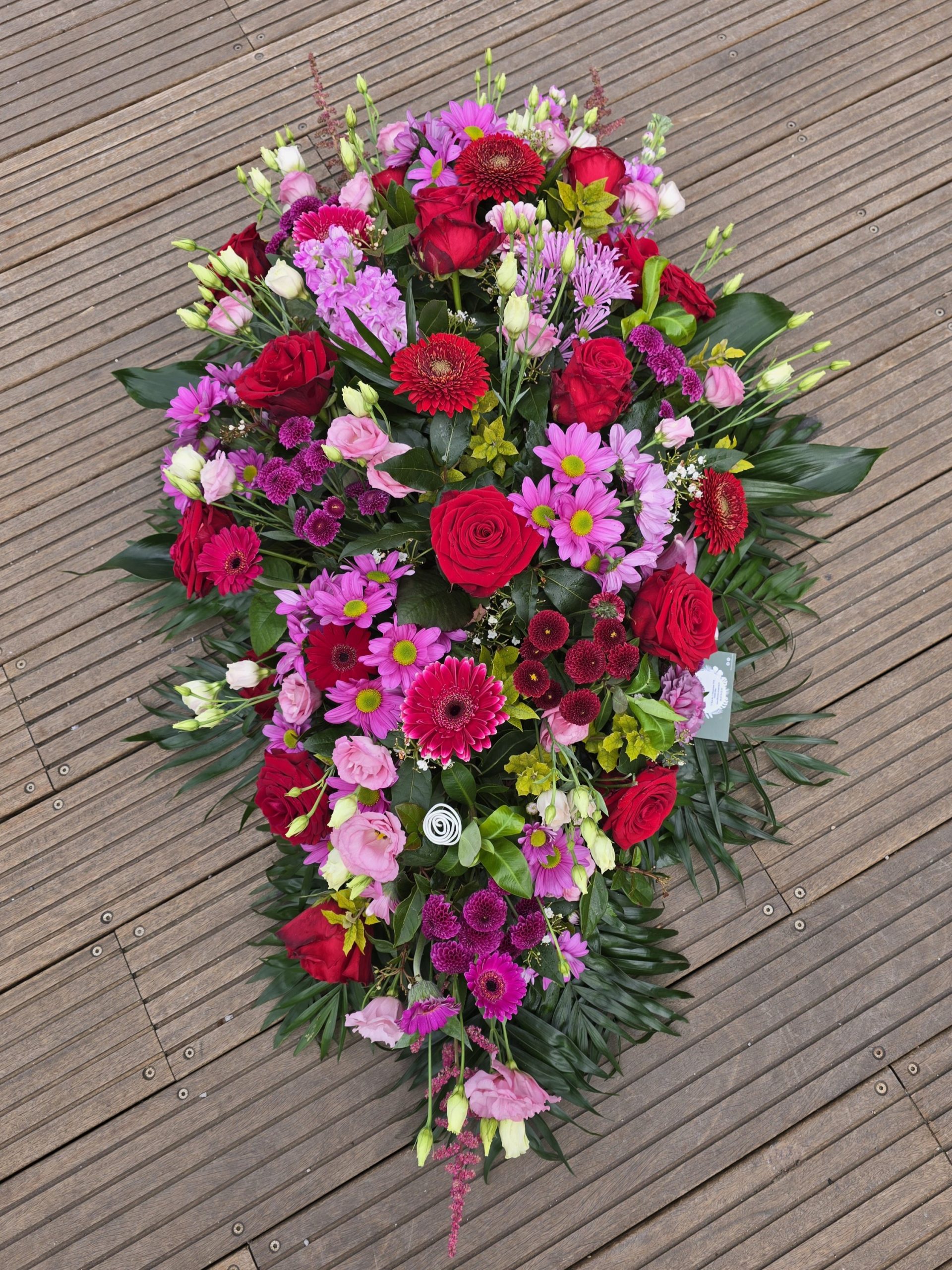La pièce florale maîtresse pour rendre hommage à l'être cher disparu, ses couleurs expriment à la fois l'amour et le respect.